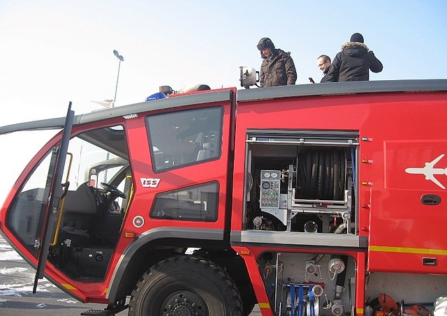 Podczas wycieczki na lotnisko studenci mieli okazję zapoznać się z pracą służb bezpieczeństwa lotniska, obsługi pasażerów, straży pożarnej, służb utrzymania płyty lotniska oraz z pracą wieży kontrolnej.